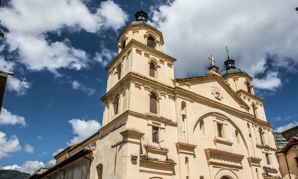 Realizzata in stile neoclassico ha un interno abbastanza spoglio rispetto agli sfarzi barocchi di altre chiese della città. Secondo la tradizione in questa chiesa venne celebrata la fondazione della città di Bogotà del 1538 per volere dell’esploratore Jiménez de Quesada che qui è sepolto.