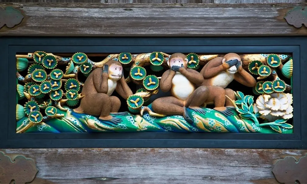 Gli edifici del santuario sono stupendi e potresti trascorrere delle ore a guardare i dettagli e le incisioni del tempio. La scultura più popolare del tempio è quella delle 3 scimmie, non vedo, non sento e non parlo.