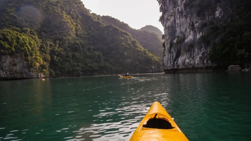 Escursione in kayak in una delle lagune della baia di Halong