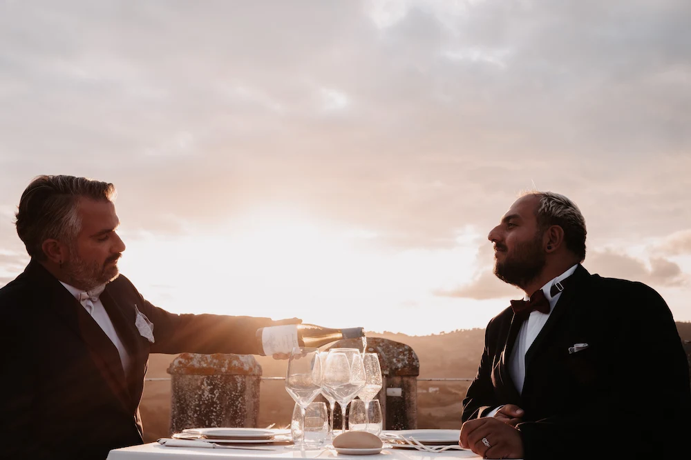 Tornando al Castello Costaguti, Events and Locations hanno organizzato per noi qualcosa di davvero speciale. Dopo un massaggio rilassante, ci siamo spostati sul tetto del castello dove al tramonto abbiamo potuto cenare in assoluta intimità godendoci uno dei momenti più belli di tutto il viaggio.
